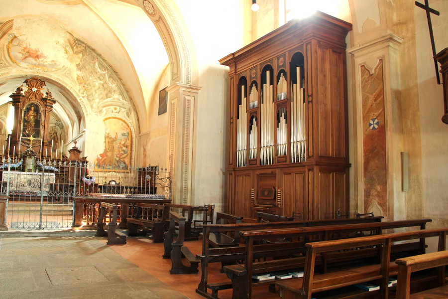 Azzio’s Convent Church marks a significant piece of Valcuvia’s valley history (province of Varese). And to Mascioni, a greater one still: the company was born right here. Thanks to generous donations the church has been totally restored, and now a new organ can again complete its artistic and musical life, too. Of two manuals and pedals, it’s a seventeenth-century Italian ripieno in the truest sense within a case to match. Drawn up by Maestro Lorenzo Ghielmi, the specification puts 17th century Baroque music as a target, notably the works of Bach, a musically spiritual leader if there ever was. Technically, a two manual suspended key action with a delicious responsive and light touch gives to the organist a perfect control. The very low wind pressure (47 mm in water column) together with a particular way of voicing (low mouth of the pipes and no nicks) gives to the sound a particularly richness in harmonics and we can say this instrument has resulted to be very inspiring and rich of soul. |