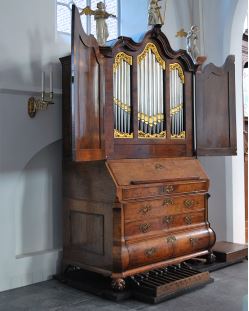 The Onderhorst Cabinet organ dates back to 1762. Of its origin it is a house organ and it is an instrument meant for chamber music. Since 2009 the organ has find a place in the northern aisle of the Old Church of Bennekom. It is regularly used for concerts where it is played solo as well as in combination with vocals and with various other instruments. The organ was built in Amsterdam by Deetlef (or: Dethleff) Onderhorst. Amsterdam was at that time the center of the Dutch art of house organ construction and Deetlef Onderhorst may be considered to be one of the most prominent builders of this type of organs. He signed the instrument with: 'Dethleff Onderhorst, Meester Orgelmaaker fecit Amsterdam 1762'. Apart from building house organs, he was also active in the maintenance and renewal of church organs and he was a builder of harpsichords as well. Onderhorst made at least sixteen cabinet organs. About half of them were lost. Most of the remaining instruments have also not passed the age of the centuries in pristine condition. The Bennekom organ is still largely in its original state, thanks to the great care of the former owners. The organ was restored between 2004 and 2009 by the well known Dutch company Flentrop Orgelbouw B.V. . It had not been restored before. The organ now has acquired the official status of a National (Dutch) Monument. |