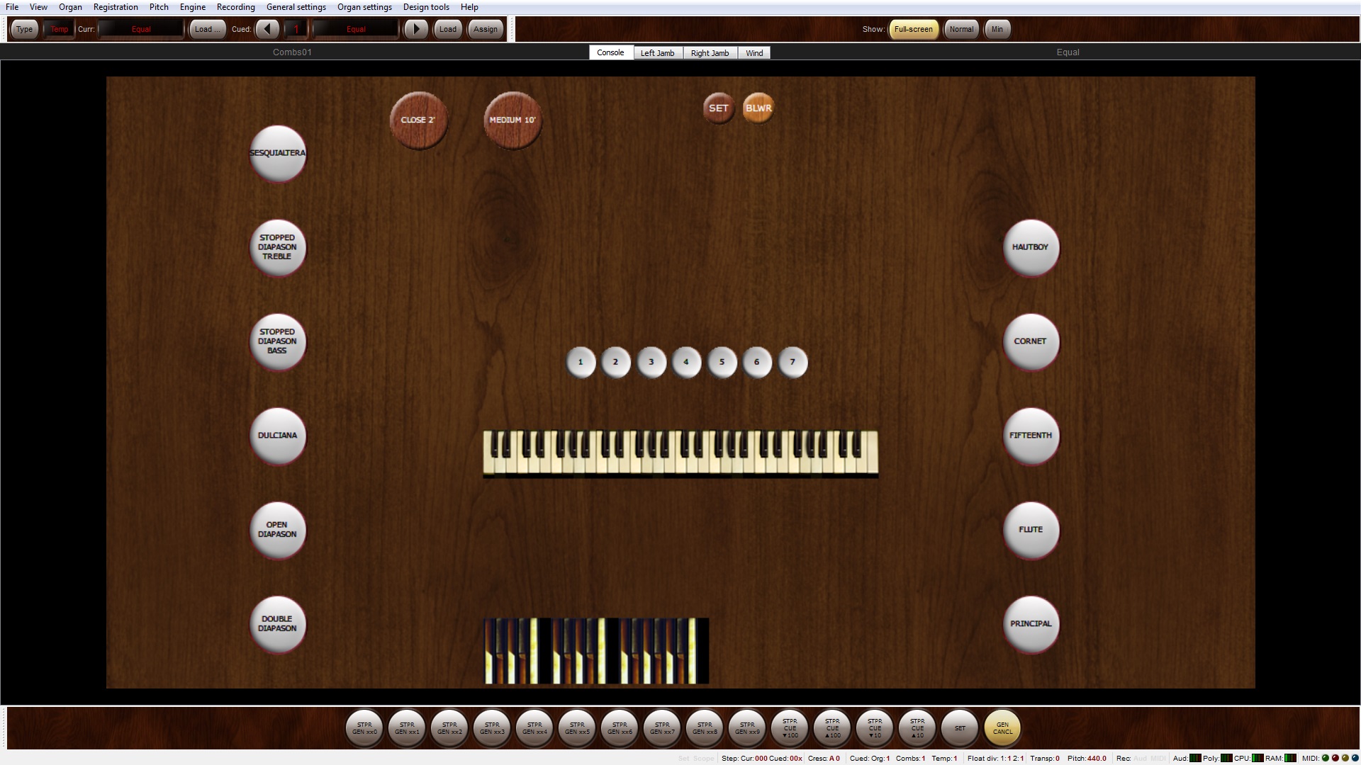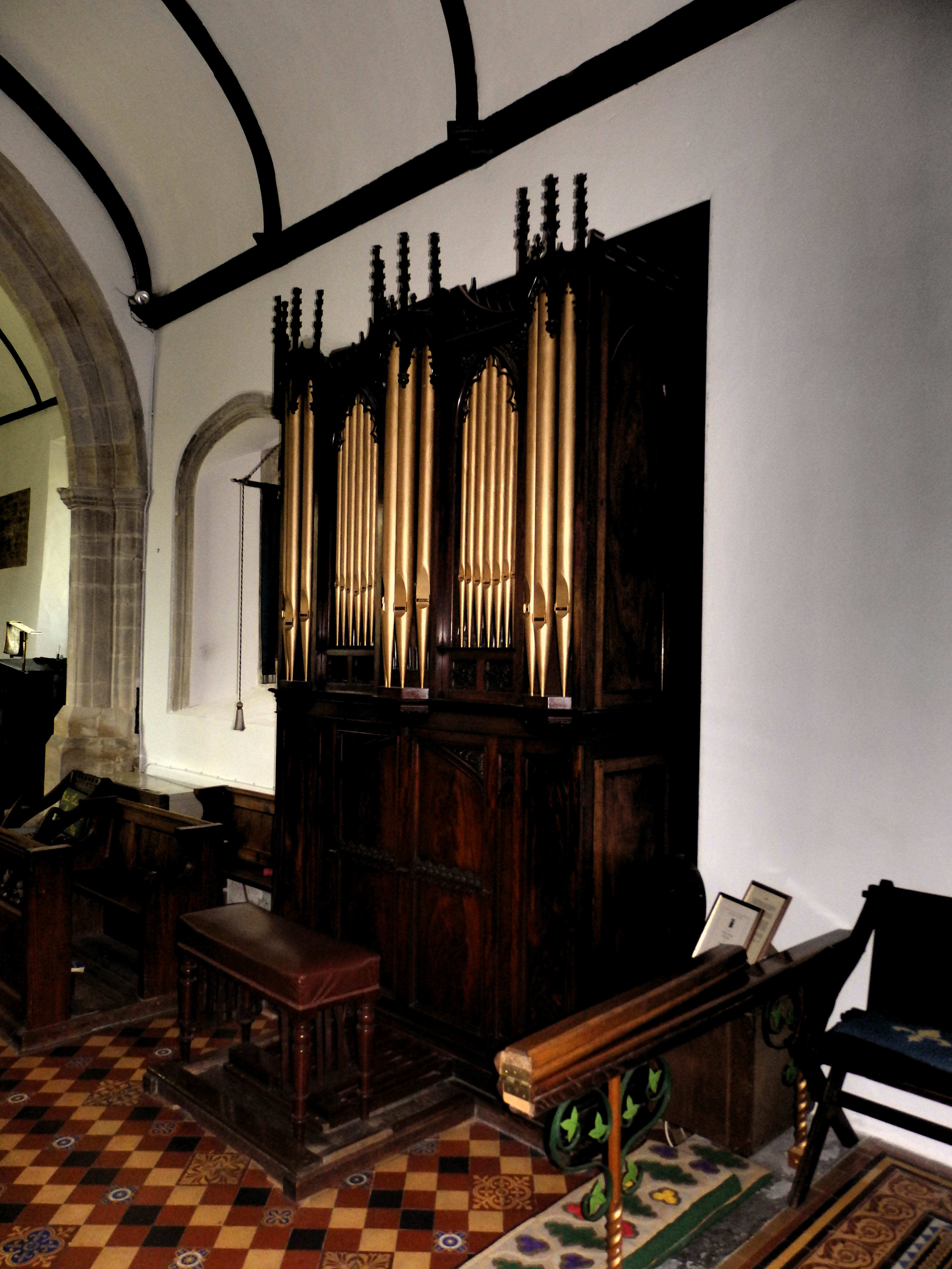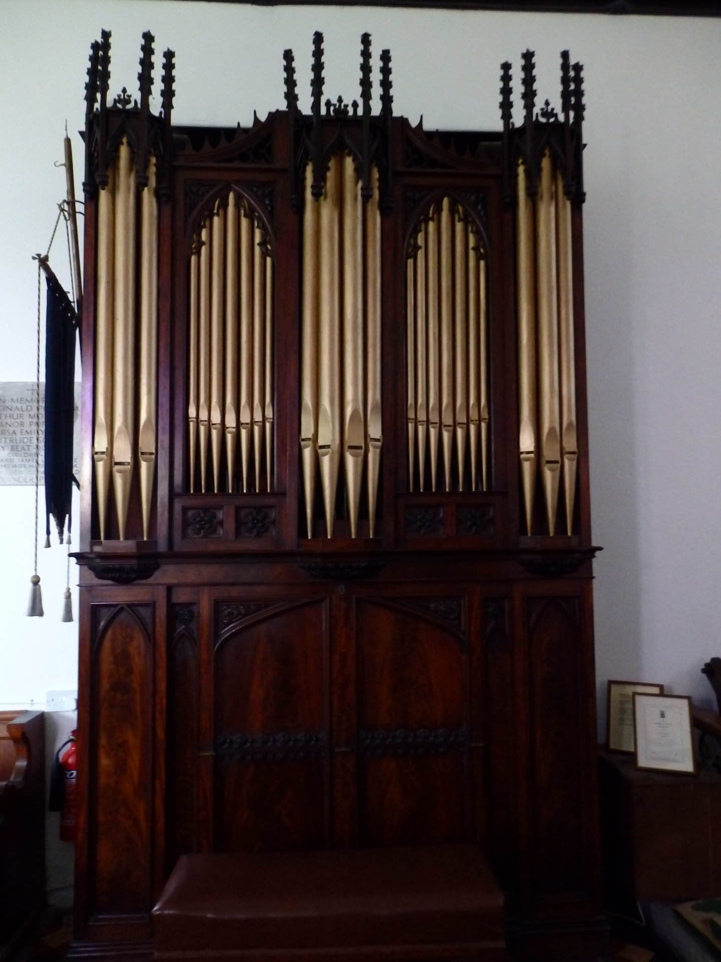 This is another rare and charming organ representing the second facsimile English HW organ dating from before the 1800's. The organ is presented in a much more sumptuous case than the smaller Avery instrument and it would seem that it was built for the church - there being no records of it having been placed elsewhere in its history. The instrument is a large single manual with nine stops and pedals. The Stopped Diapason and the Mixture are split into bass and treble halves whilst the remainder are complete. The instruments has a long compass down to G, finishing at F giving a compass of 59 notes. The keyboard slides out into place once the covering "flap" is opened. As per the norm for instruments of this period, G# in the bass does not exist in the real instrument (we have provided pitch shifted notes to provide the missing pipes). The tuning is most likely 10th. comma which allows pretty much all keys to be played without the unpleasant wolves of other temperaments. Thanks to Hauptwerk many different temperaments can be applied as users see fit. The instrument is cone tuned throughout. The instrument remains untouched and unaltered with the exception of the provision of an electric blower a few years ago. The drawstops are held in by a notch when "off" and spring out when "pulled". The specification is: Double Diapason, Open Diapason, Dulciana, Stopped Diapason Bass, Stopped Diapason Treble, Principal, Fifteenth, Sesquialtera, Cornet and Hautboy. There is a shifting pedal to cancel or bring on the upper work. |