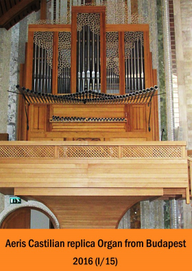 This housing estate was built in communism and it was forbidden to build a church here for decades. The foundation stone of the Holy Angels church was built in 1990, but it was built only very slowly,. It was dedicated 25 years later, in 2016. The church is one of the most beautiful modern Hungarian architectural works, its interior is wonderful. The mosaics decorating the walls of the sanctuary were made by Marko Ivan Rupnik, a world famous Slovenian Jesuit artist. The crossroads are the work of Barza Buza. The organ was produced by the Aeris organ factory in 2016. The main profile of this organ factory is the restoration of old organs and the creation of a certified copy of historical baroque organs. One of the most successful pieces of this work is this little Castilian organ. The organ of the Santa Maria church in Tordesillas (by Phelipe Urarte, 1716) served as a model for this instrument. The reed-pipes of organ made by Joaquín Lois, a famous Spanish organ builder. The following friends helped me to make and publish the sample set (in alphabetical order): Dominique Dantand, Gérard Lefranc, Jean-Pierre Silvestre and Adrian Wheal. If something's done well, it's thanks to them. Thank you for their work. |