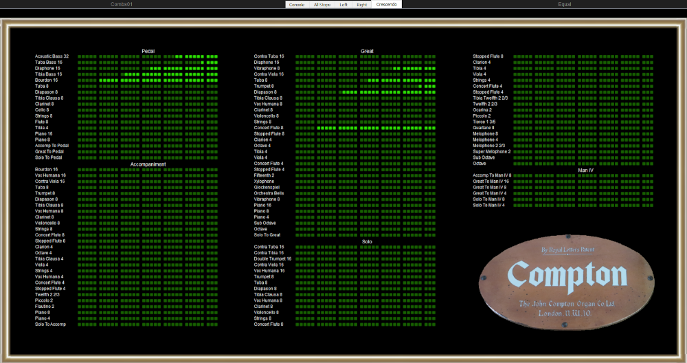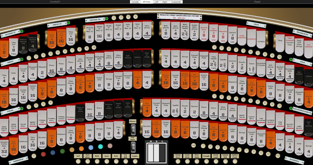 The Astoria Southend Compton sample set recreates the Astoria specification (the original specification before the additions at Wyton House), combining the original 11 ranks with the Melotone samples. Of course it cannot take account of any voicing adjustments that may have occurred between installation in 1935 and sampling at Wyton House in 2018. However the fact that the 21st century Tibia and Melotone trem rates still match is a good sign that not too much may have changed. The sample set features a colour changing recreation of the original Astoria illuminated surround, based on original pictures from the Astoria and detail from extant surrounds of the same design. There is one omission from the full Astoria specification, as this included a Solo Cello. The pandemic has delayed attempts to sample a Solo Cello, but we hope to do so once conditions allow and to retrofit it to the Astoria sample set as an upgrade. |