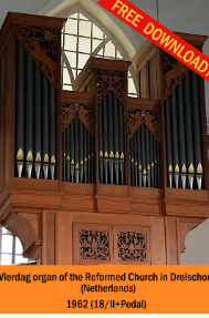 In the center of Dreischor, there is a big church, which is so big due to the fact that it was the Parish Church of the community of Roman-Catholics. The church was built in 1342, first they started with the choir, and later-on, around 1400 the rest of the church was built. The church is built in a Gothic Architecture style, and has a remarkably good acoustic situation After the flood of 1953, a new organ was built. This organ has been built by the dutch firm Vierdag (which does not exist anymore) and is mildly voiced for its time, where it is built in the neo-baroque style. It counts 18 stops, of which 1 is a transmission from the hoofdwerk. The stops are divided over 2 manuals (Hoofdwerk and Borstwerk) and pedals. The borstwerk is in a little swell-box which has been created in the software too. The organ has a fully mechanical tracker- and stopaction. Special thanks to Leander vd Bos for obtaining the license. He recorded with the help of Erna van der Spek and Willem Simonse. The following friends helped me to make and publish the sample set (in alphabetical order): Dominique Dantand, Gerard Lefranc, Nagy Istvan and Jean-Pierre Silvestre. If something's done well, it's thanks to them. Thank you for their work. |