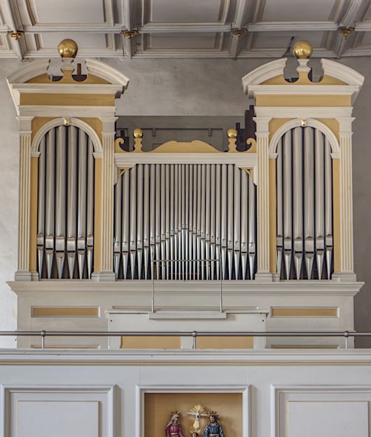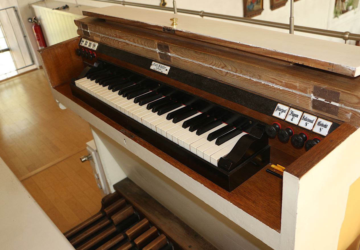 Carl Schäfer (1838-1922) was the last representative of the Schäfer family of Swabian organ builders from Göppingen. In the year of his birth, his father Johann Heinrich Schäfer (1810-1887) moved from Göppingen to Heilbronn and established his own workshop there. He and and Carl Schäfer, wo received his training from his father and later took over his workshop, had soon made a name for themselves with the quality of their work. Therefore, Carl Schäfer war commissioned to build numerous new organs in the region, especially in the second half of the 19th century. The typical sound of the Schäfer organs can be described as Swabian Romantic: Orchestral and smooth. The little organ of the Frauenkirche Neckarsulm, built in 1895, is one of Carl Schäfer's late works. It features the typical Schäfer style expressive but not aggressive Prinzipal 8' and Gedeckt 8', the calm Salicional 8', the Fugara 4' that allows the organist to lead the congregational singing and a Subbass 16'. Brighter and or more powerful sounds can be created by means of Octavkoppel and Tutti. |