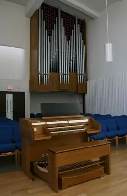 A Pipe Organ was installed in the First United Methodist, San Diego Trotter Chapel and dedicated on September 12, 2010. Tonal concepts and specifications for the organ were cooperatively developed by Organ Builder, Lyle Blackinton; Organist, Robert Plimpton and Music Director, Stanley Wicks. The challenge was to design an instrument of modest size to be used primarily for small services, weddings, and funerals, but in addition, would have the versatility to be used for other intimate musical events. |